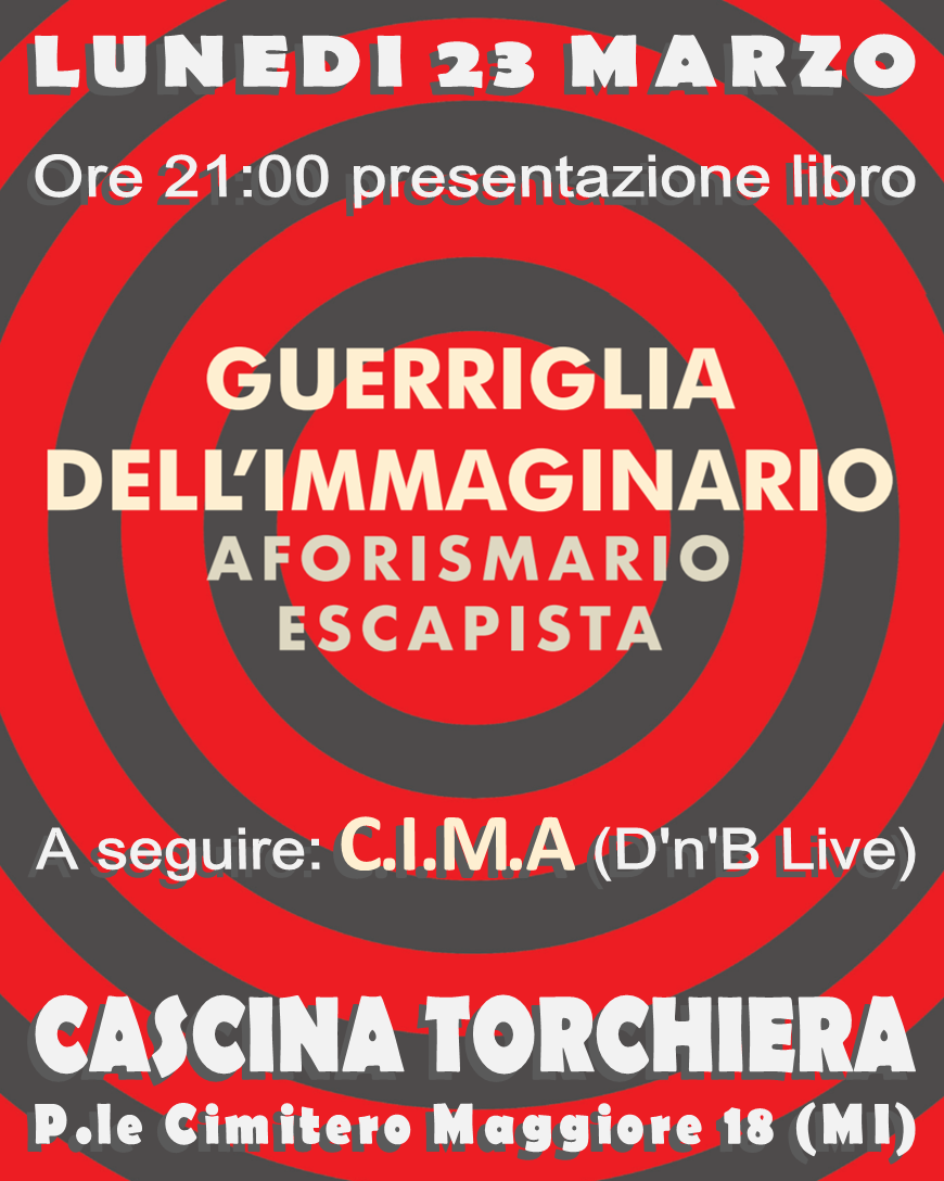 Lunedi 23 Marzo, ore 21:00 alla cascina Torchiera,presentazione di :Guerriglia dell’Immaginario – Aforismario Escapista con l’autore Niten Del Cima