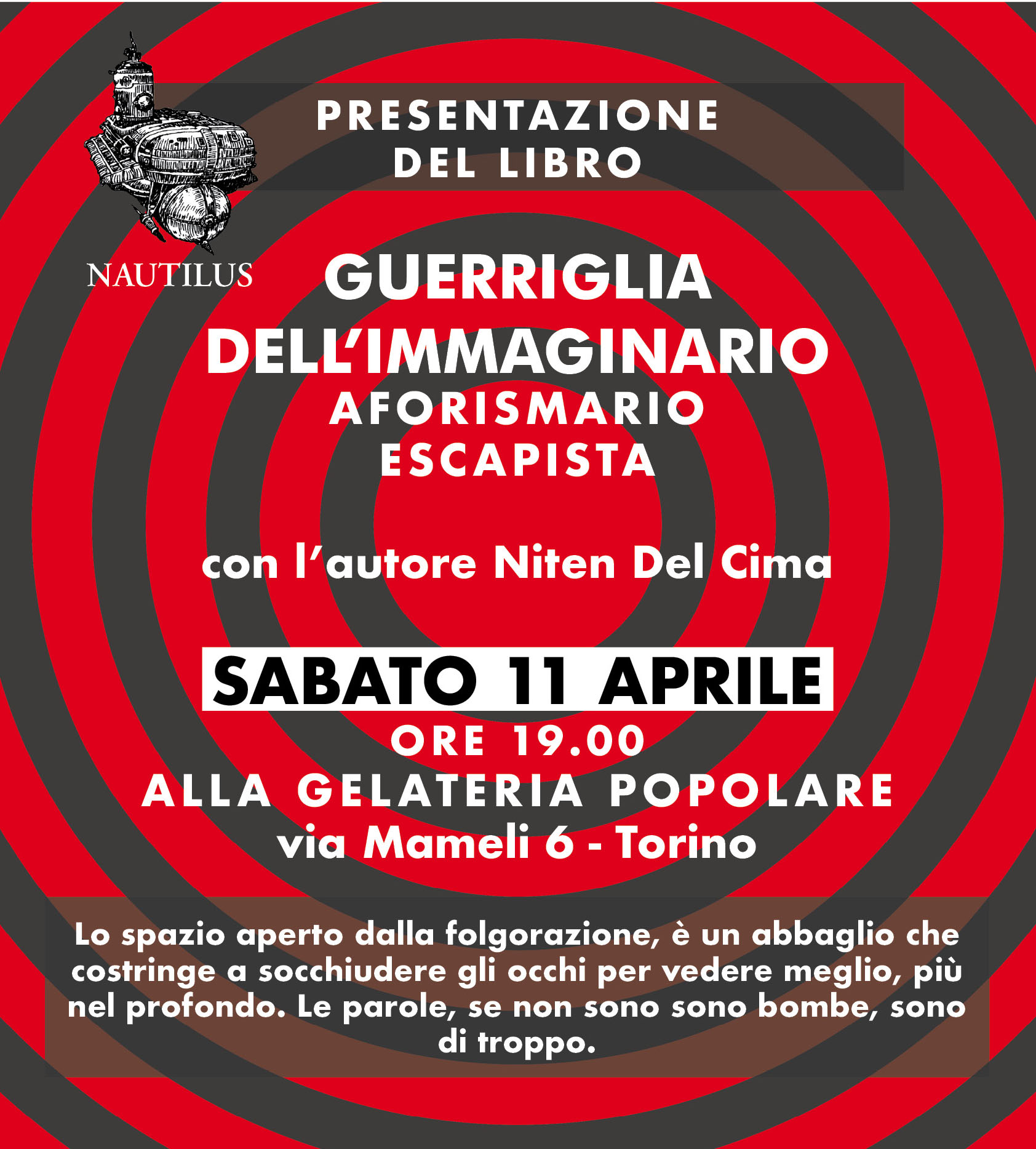 Presentazione del libro “Guerriglia dell’Immaginario – Aforismario Escapista” con l’autore Niten Del Cima